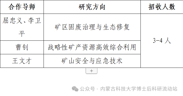 1.招收矿业工程学科博士后3-4人。