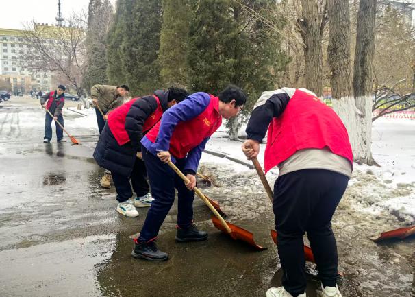 2025年3月4日,best365手机版官方网站组织教师、学生党员、学生干部开展清扫冰雪志愿服务活动。
