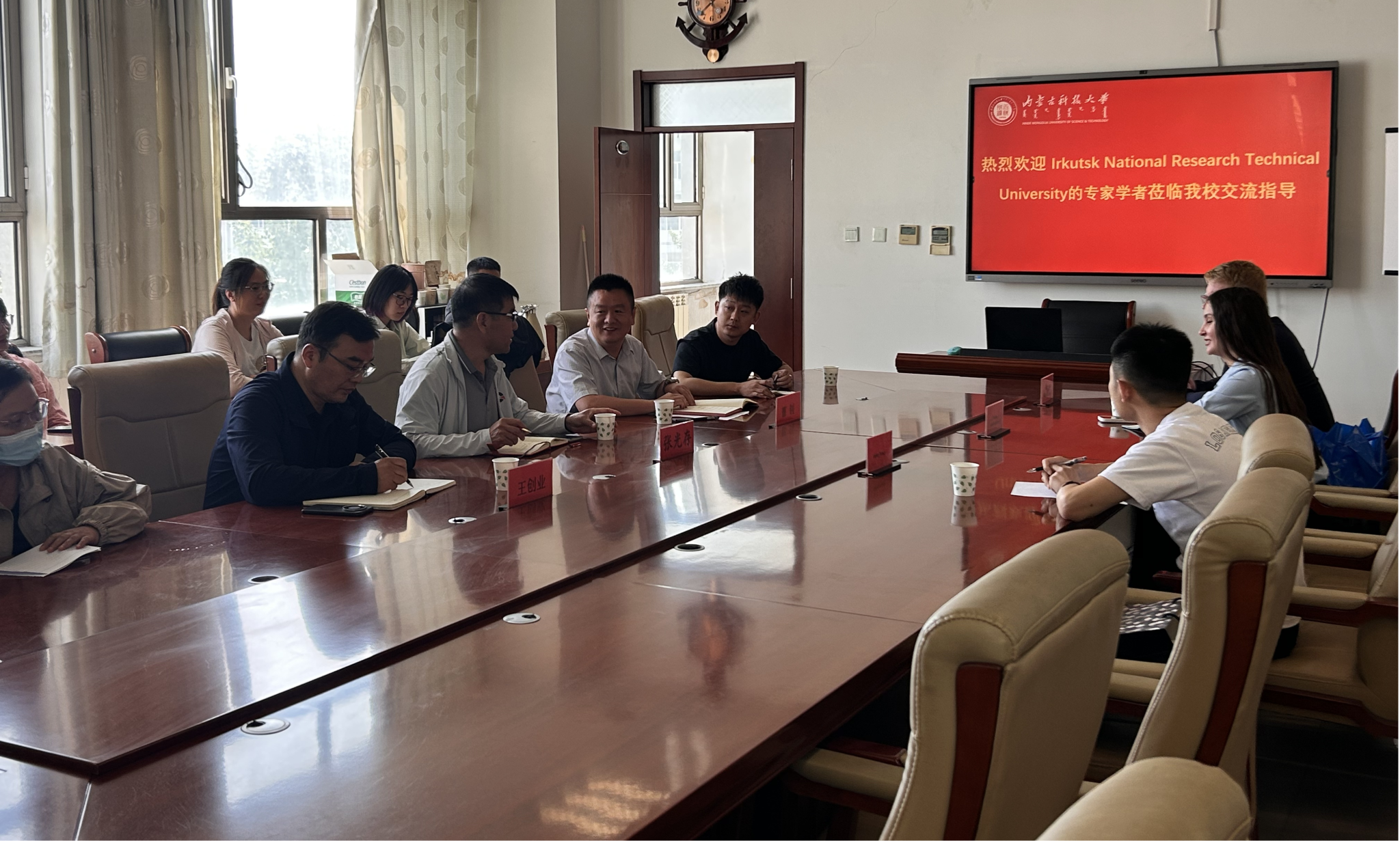 2025年9月9日俄罗斯伊尔库茨克国立理工大学专家学者Alexander Burdonov、Tatiana Sakhabutdinova、Aiqing Wang一行到访best365手机版官方网站开展学术交流活动,会议期间best365手机版官方网站科技处处长曹钊、best365手机版官方网站院长张光存、副院长王创业及教师代表与到访专家围绕矿物加工领域的前沿技术与合作前景深入研讨,就后续科研合作与立项达成多项共识。