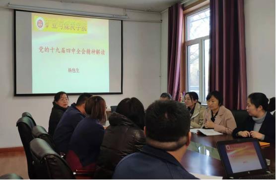 2019年11月14日上午,best365手机版官方网站党副院长兼教授委员会办公室主任杨包生为学院教工第一党支部全体党员在学院办公楼一楼会议室进行“不忘初心、牢记使命”主题教育专题党课。党课以“党的十九届四中全会精神解读”为主题,围绕以下内容展开讲解:
