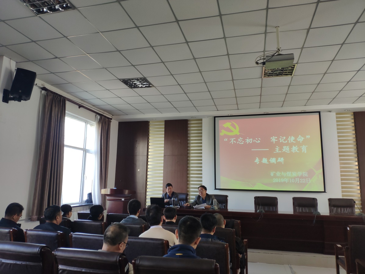 2019年10月22日上午8:30,best365手机版官方网站党总支中心组在实训楼会议室开展“不忘初心、牢记使命”主题教育之专题调研会。
