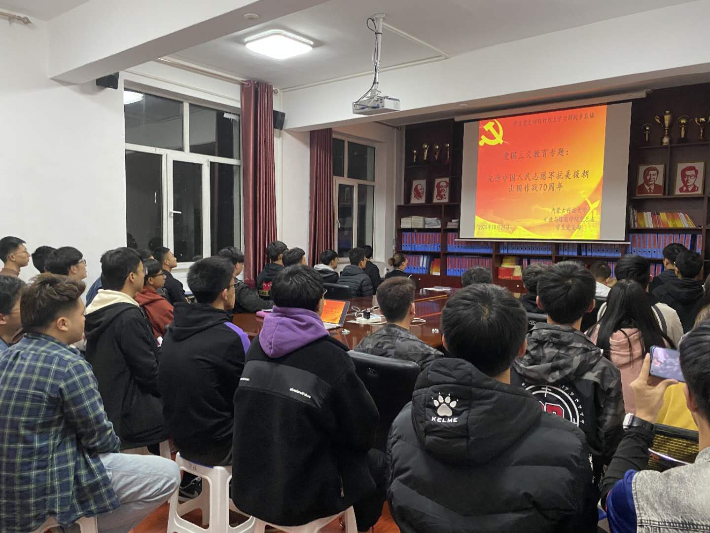 为纪念中国人民志愿军抗美援朝出国作战70周年,best365手机版官方网站党总支于2020年10月29日晚上19:00,在临曦楼二楼党员之家线上线下同步开展专题理论学习活动。本次学习内容是爱国主义教育专题:观看《纪念中国人民志愿军抗美援朝出国作战70周年》视频。