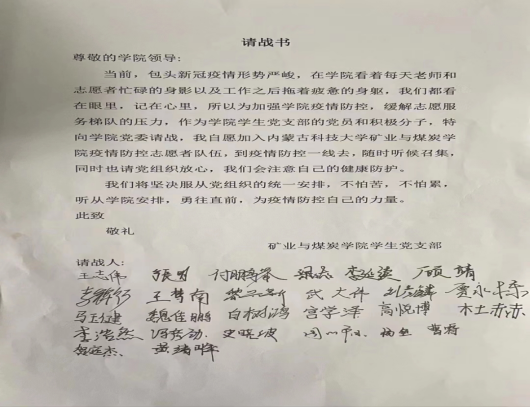 【学生第四党支部党员及积极分子请战书】