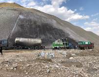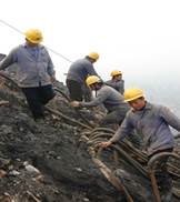 矸石山底部喷浆封闭施工 矸石山复垦进行