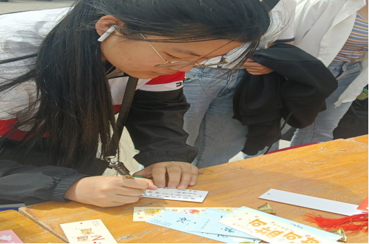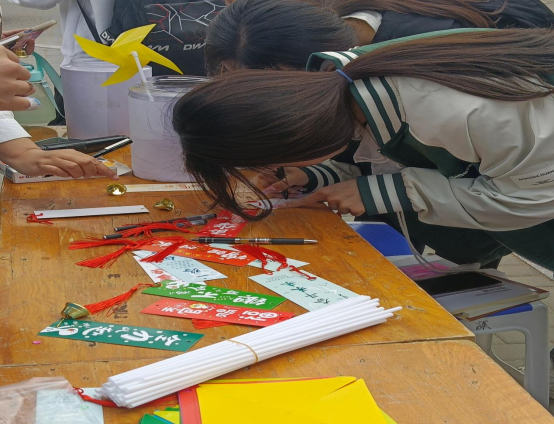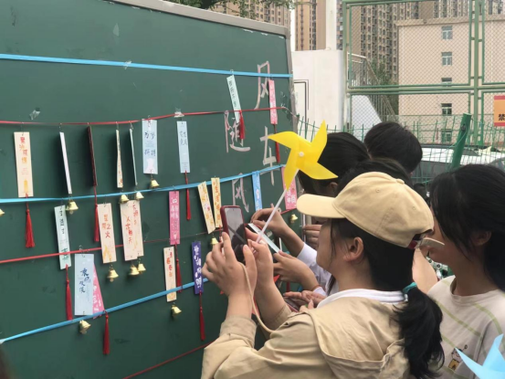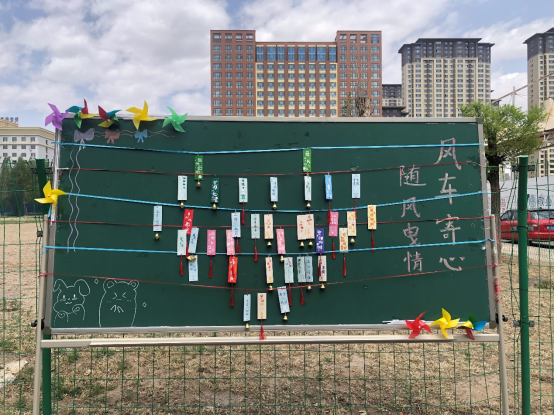 活动中,同学们将手中的材料,把自己的感受运用色彩、图画,一笔笔涂鸦在风车上,还有的同学选择了不同的卡片进行留言,制作出了一份份极具巧思的作品。