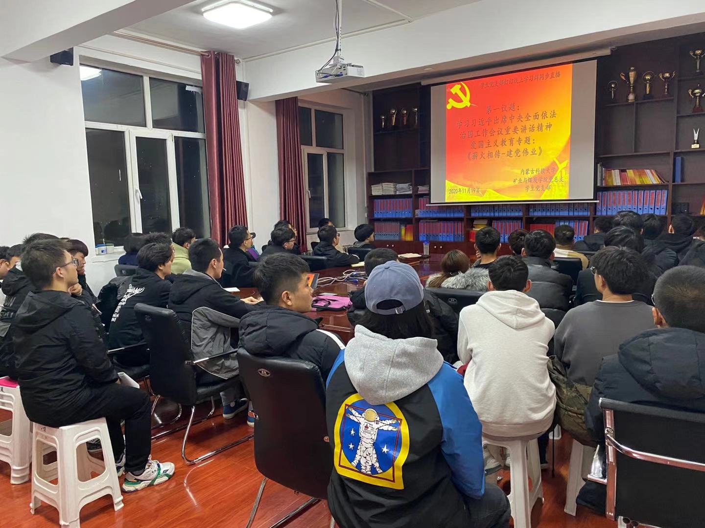 为大力弘扬爱国主义精神,best365手机版官方网站党总支于2020年1119日晚上19:30,在临曦楼二楼党员之家线上线下同步开展专题理论学习活动。本次学习内容是:第一议题:学习习近平出席中央全面依法治国工作会议重要讲话精神;爱国主义教育专题:观看《薪火相传-建党伟业》视频。