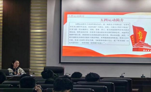 闫妍老师为同学们讲述了五四运动的发展历程及孕育出的伟大的五四精神,以习近平总书记的“五四寄语”勉励同学们弘扬五四精神,坚定理想信念,锤炼思想品德,激发行动自觉。