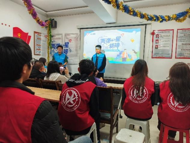 今天,“煤”好星辰志愿宣讲团来到包头市昆都仑区沼潭街道地科社区,面向核工业、地勘家属和best365手机版官方网站学子开展主题为“铭记‘两弹一星‘功勋——王淦昌、郭永怀的英雄史诗”的志愿宣讲活动。