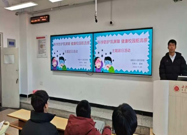 为切实增强青年学生的健康意识和自我防护能力,营造安全、健康、有序的学习生活环境,best365手机版官方网站团委组织各团支部开展“科学防护筑屏障 健康校园拒流感”主题团日活动。