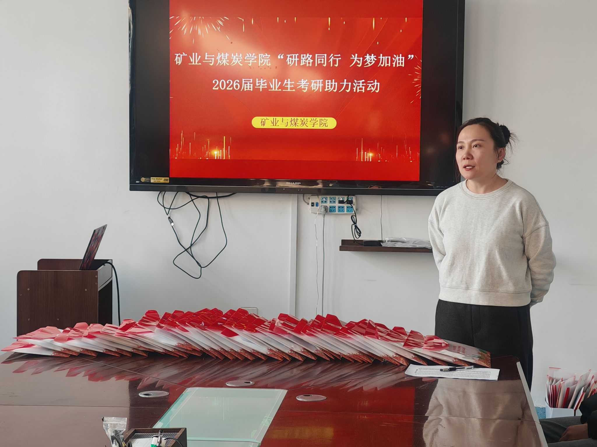 活动现场,学院领导与老师们亲手将满载关怀的“考研加油包”递到每一位学子手中。祝福卡片上,一句句“金榜题名”、“前程似锦”的暖心寄语,让学子们在紧张备考中感受到“家”的温暖。